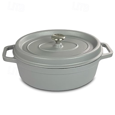 ovaler Schmortopf aus Gusseisen mit Tropfdeckel, hellgrau
