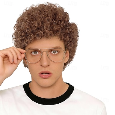 Braune Lockenperücke mit Brille für Herrenkostüme, braune Afro-Lockenperücke, lustige Perücken im Stil der 70er und 80er Jahre für Retro-Cosplay