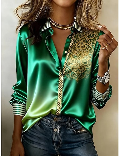 Damen Hemd Arbeitshemd Glitzer Ombre Grafik Elegant Stilvoll Lässig Langarm Hemdkragen Normale Oberteile Täglich Arbeit Party-Abendmode Blau Rosa Purpur Gold Grün Frühling, Herbst, Winter, Sommer
