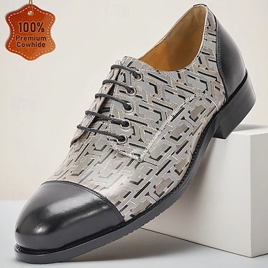 Hochwertige Herren-Hochzeitsschuhe aus Leder – graues, gemustertes Design mit schwarzer Lederkappe, stilvolles, formelles Schuhwerk für Hochzeiten und besondere Anlässe