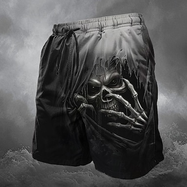 Herren Schädel Kostüme Schwimmshorts Badehosen Boardshorts Mid Waist Mode Streetwear Designer Lässig Täglich Urlaub Mit Kordelzug Tasche Elastischer Bund Designer Kleidung Apparel
