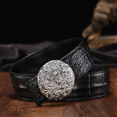 Herren Gürtel Automatische Schnalle Schnelle Veröffentlichung PU-Leder Legierung Langlebig Verstellbar Drache Silber Gold Outdoor Täglich Taillengürtel
