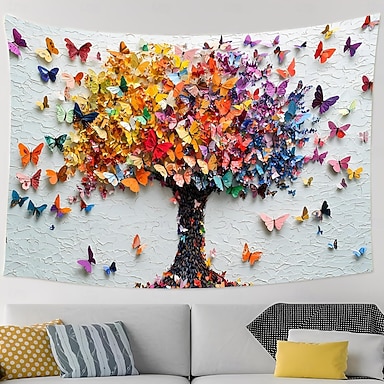 Wandteppich mit farbenfrohem Baummotiv, lebendiger Natur, dekorativer Stoff für Wohnzimmer, Schlafzimmer, Studentenwohnheim und als Geschenkidee