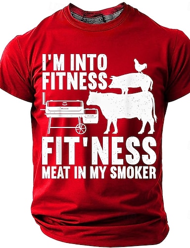 Vatertags-Herren-T-Shirt mit Fitnessmotiv: Fleisch aus dem Smoker, BBQ, Kuh, Schwein, Huhn – witzig, humorvoll, Wortspiel, Grafik, normale Passform, Grillparty, Designerkleidung, Größen: S, M, L, XL,