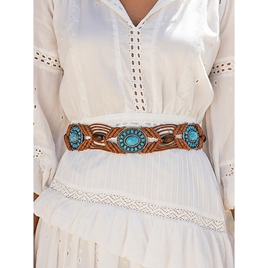 Türkisfarbener Concho-Kettengürtel für Damen – verstellbarer Western-Taillenschmuck im Vintage-Boho-Stil für Kleider, Festivals und Partys