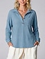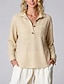 Damen T-Shirt Langarm Viertelreißverschluss Langarm Lässiger Reißverschluss Pullover Sweatshirt Sport Basic Texturiertes Waffelmuster Street V-Ausschnitt Halbzip Schwarz Weiß Rot Blau Grau Herbst