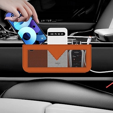 Universelle Auto-Aufbewahrungstasche aus Netzgewebe mit Tasche an der Sitzlehne für Handy, Geldbörse, Kartenhalter, Organizer, seitliche Aufbewahrungstasche aus PU-Leder, Lückenfüller für Autozubehör