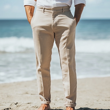 Herren Leinenblazer Sport Jacke Notch-Kragen Mode Lässig Einfarbig Blazer Beige Standard Passform Einreihig Zwei-Knöpfe