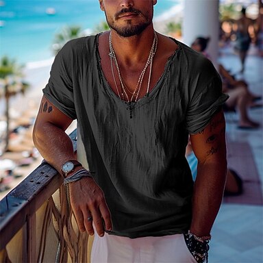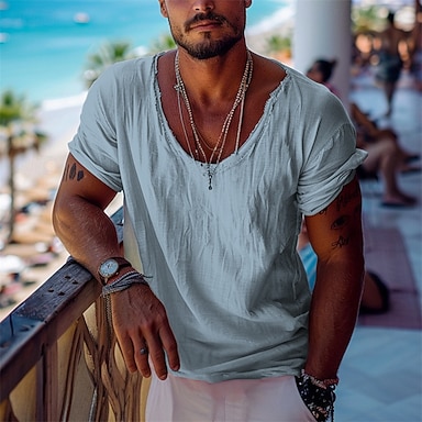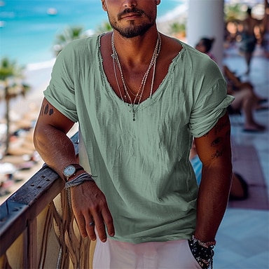 Herren T Shirt T-Shirt Kurze Ärmel V Ausschnitt Sommer Einfarbig Mode Designer Basic Vintage-Stil Urlaub Straße Alltagstauglich Beige Top T-Shirt für Herren