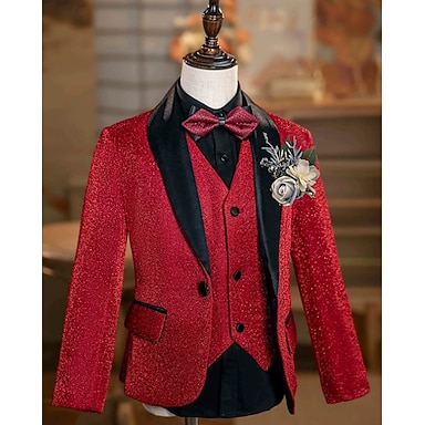 Ring-Träger Anzug Jungen Kinder Anzug Blazer & Weste & Hosen & Hemd & Krawatte Lässig Outdoor Party Mode Cool Basic Einfarbig Tasche Knöpfe Rote Polyester