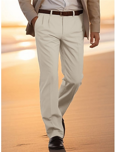 Herren Anzughosen Hose Hosen Anzughose Tasche Gerade geschnitten Glatt tragbar Knitterfrei In voller Länge Hochzeit Geschäft Täglich Modisch Basic Schwarz Hellgrau Mikro-elastisch