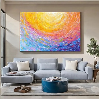 Ölgemälde, handgemalt, herrlicher Sonnenaufgang, Wandbild für Wohnzimmerdekoration, Landschaftsmalerei, abstrakte Wandkunst, Seestück, Meereswandbild, Heimdekoration, Wandkunst