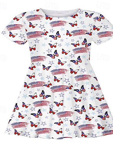 Mädchen 3D Grafik Flagge 250-jähriges Jubiläum T-Shirt Kurzarm 3D-Druck Sommer Frühling Sport Mode Streetwear Kinder 4-12 Jahre Rundhalsausschnitt Lässig Täglich Outdoor Normale Passform