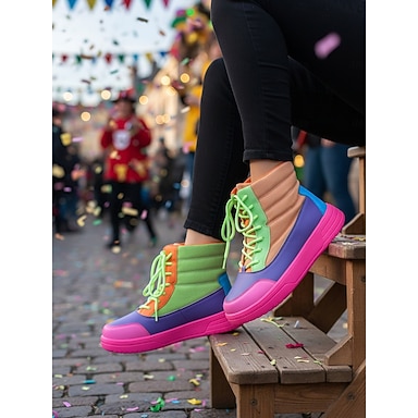 Damenschuhe Mardi Gras Bunte Karneval High-Top-Sneaker mit mehrfarbigen Panels und Schnürsenkeln lustige und lebhafte Streetstyle-Schuhe für Festivals Partys Paraden und Abenteuer im Freien