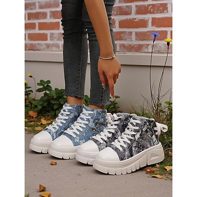 Damen Canvas High-Top Sneaker – lässige Plateau-Schnürschuhe für Streetstyle, Reisen und Wochenendaktivitäten