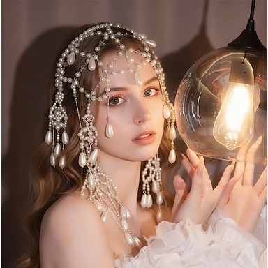 Samba Accessories Perlenhängende Kopfdekoration - Elegante Faux-Perlen Stirn-Ketten Hochzeits-Haar-Schmuck Feenprinzessin Elfenkopfschmuck Leistungskostüm
