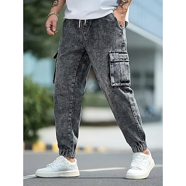 Herren Cargo-Hosen Jogginghose Jogger Hose Freizeithose Acid-Wash-Hosen Kordelzug Elastischer Bund Einfach Komfort Volle Länge Lässig Täglich Outdoor Mode Streetwear Grau Unelastisch