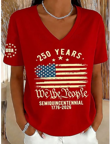 Amerikanischer Unabhängigkeitstag Damen T Shirt T-Shirt Druck Grafik Nationalflagge Stilvoll Klassisch Lässig Kurzarm V Ausschnitt Normale Oberteile Täglich Ausgehen Wochenende Blau Rote Khaki Sommer