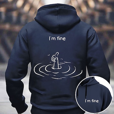 Herren Grafik Hoodie "Ich bin okay" sarkastischer ertrinkender Daumen hoch Lifestyle Humor Langarm