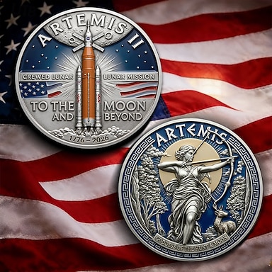 Gedenkmünze zur Artemis-II-Mondmission, Hommage an die bemannte Mondrückkehr 2026, Astronaut &Raketen-Sammlerstück, historisches Erinnerungsstück des US-Raumfahrtprogramms