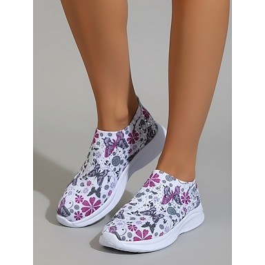 Damen-Sneaker mit rosa Schmetterlings- und Blumenmuster, atmungsaktive Strick-Plateau-Slipper, bequeme Freizeitschuhe für den Alltag & &ganztägiges Tragen