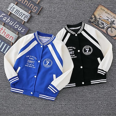 Kinder Unisex Baseball-Jacken Oberbekleidung Farbblock Langarm Comfort Knöpfe Weich Mantel Outdoor Mode Täglich Blau Grau Frühling Herbst Ab 4 Jahren