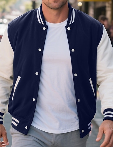Herren Leichte Jacke Bomberjacke Collegejacke Lässig Täglich Warm Tasche Farbblock Herbst Winter Farbblock Mode Klassisch Stehkragen Kurz Schwarz Rote Burgunderrot Königliches Blau Grau Jacken