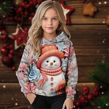 Mädchen 3D Graphic Schneemann Kapuzenshirt Langarm Herbst Winter Modisch bezaubernd Basic kinderkleidung 4-12 Jahre Mit Kapuze Outdoor Casual Täglich Regular Fit