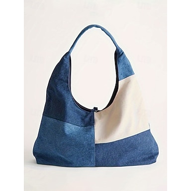 Damen-Jeans-Patchwork-Tragetasche/Hobo-Bag, großes Fassungsvermögen, perfekt für Urlaub und den lässigen Alltag