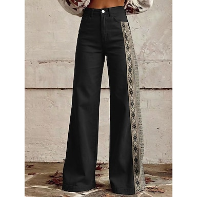 Retro Vintage 1970er Y2K Hose Hose mit weitem Bein Hippie Disco Hohe Taille Stammes Jeans-Imitat Kostüm Damen Karneval Alltagstauglich Musikfestival Retro-Mottoparty Erwachsene Hose