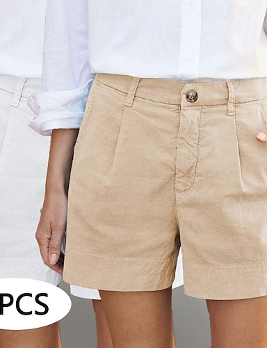 Damen Kunstbaumwollleinen Chinos Shorts Sommershorts Urlaub Streetwear Lässig Kurz Mittlere Taillenlinie Einfach Tasche Bequem Atmungsaktiv Unelastisch Täglich Outdoor Urlaub Weiß Knackmandel Sommer