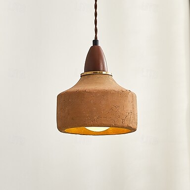 Retro-Pendelleuchte aus Beton im Wabi-Sabi-Stil, kaffeefarbene Keramik-Hängeleuchte, japanische Pendelleuchte aus Massivholz, verstellbare Deckenleuchte im Mid-Century-Stil aus Terrakotta, G9 110–240