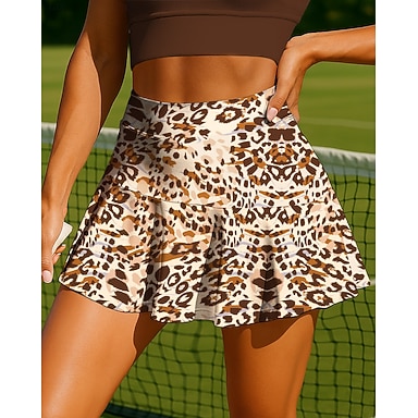 Damen Tiermotiv Leopard Lässiger Rock Tennisröcke Ärmellos Patchwork Tasche 2 in 1 UPF50+ UV-beständig Mehrlagig UV Schutz Volleyball Tennis Badminton Shorts Rock Blau und Weiß Waldgrün Leichte Kaffee