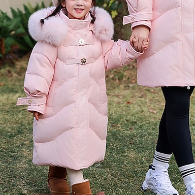 Kinder Mädchen Daunenjacke Daunenjacke Einfarbig Sport Fellbesatz Tasche warm halten Winddicht Outdoor Mantel Oberbekleidung 4-12 Jahre Winter Schwarz Weiß Rosa