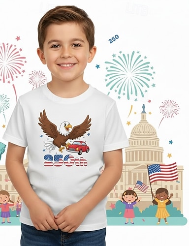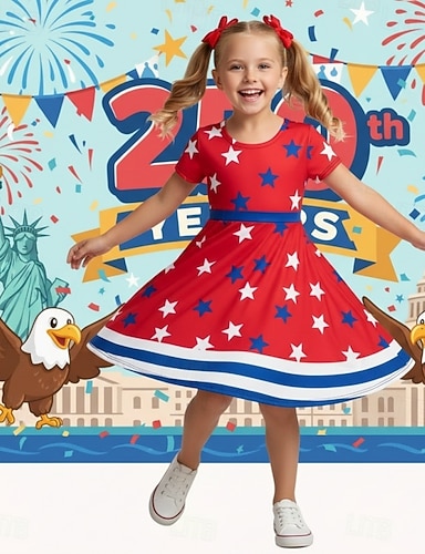 Mädchen' 3D Grafik Gestreift Sterne Kleid Kurzarm 3D-Druck Sommer Frühling Täglich Urlaub Party Niedlich Basic Lässig Kinder 4-12 Jahre Freizeitkleid A Linie Kleid Knielang Normale Passform