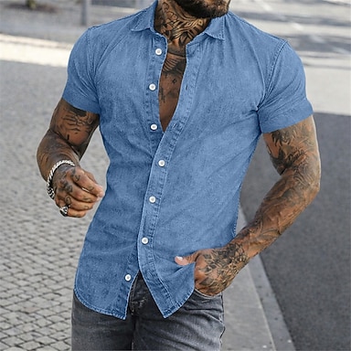 Herren Hemd Freizeithemd Hemd aus 100 % Baumwolle in Säurewaschung Blau Hellrosa Schwarz Weiß Rote Kurzarm Einfach Hemdkragen Lässig Täglich Patchwork Bekleidung Elegant Mode Lässig