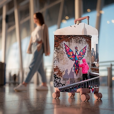 Elegante Gepäckhülle mit Pfauenfedermuster, dehnbarer Reisekofferschutz mit farbenfrohem Vogelmotiv