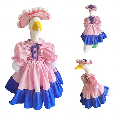 Vintage-Gänse-Outfit in Rosa und Blau mit Haube, Rüschenkleid im viktorianischen Stil für 60-65 cm große Betongänse, saisonale Gartendekoration, Gans nicht enthalten