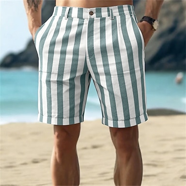 Herren Shorts Leinenshorts Sommershorts Strandshorts Tasche Elastischer Bund Gestreift Komfort Atmungsaktiv Knielang Outdoor Strand Ferien Urlaub Blau Rosa Unelastisch