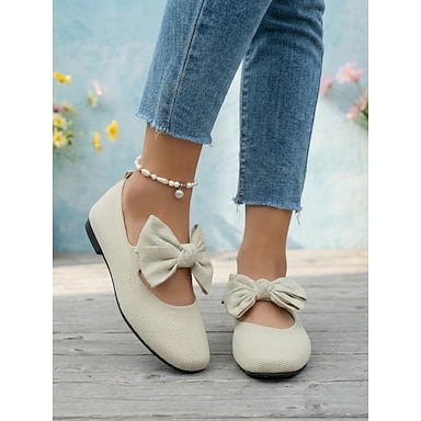 Beige Strickballerinas für Damen mit Schleife – leichte, atmungsaktive Slipper für die Freizeit, bequeme Schuhe zum Laufen, ideal für Arbeit, Reisen, Büro und Alltag.