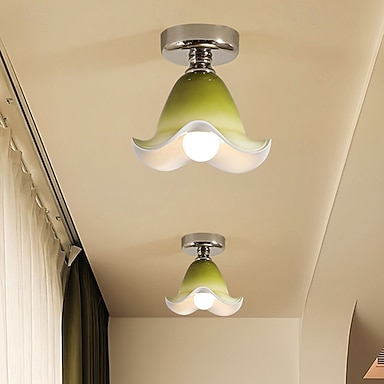 Traditionelle französische Blumen-Deckenleuchte aus Eisen und Glas mit einem Licht zur halben Deckenmontage für den Flur