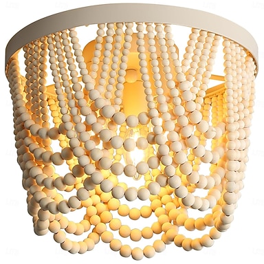 Boho-Holzperlenlampe, 3-flammige Einbau-Deckenleuchte in Primärfarben, antik-rustikaler Mini-Kronleuchter für Esszimmer, Schlafzimmer, Mädchenzimmer, Kinderzimmer, Flur, Eingangsbereich