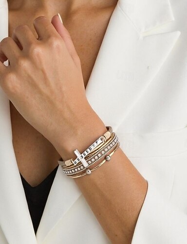 Geschichtet Klassisch Geflochten Kreuz Mode Leder Armband Schmuck Schwarz / Weiß / Rosa Für Täglich Ferien Date