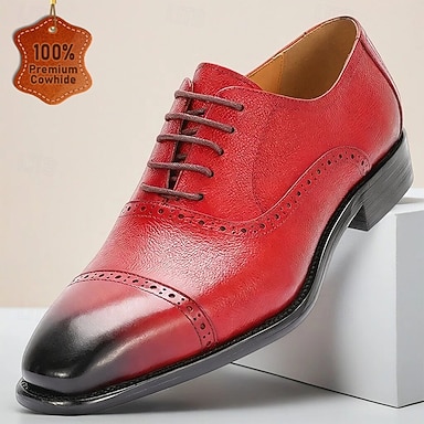 Herren Klassisch Lässig Hochzeit Leder Italienisches Vollnarbenleder Rutschfest Schnürung Schwarz Gelb Rot Frühling Ganzjahres