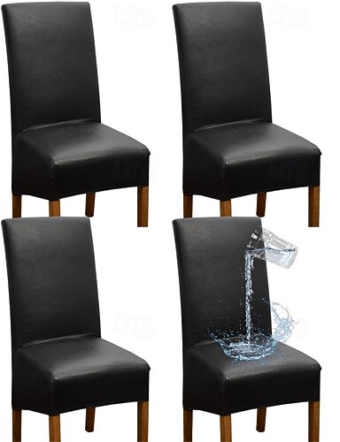 wasserdichter Esszimmerstuhlbezug, schwarzer Stretch-Stuhlbezug Stuhlhussen, PU-Leder, Sitzbezug mit hoher Rückenlehne, mit Gummiband für Esszimmer, Hochzeit