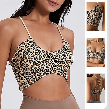 Damen Riemchen-Sport-BHs Unterwäsche Geringe Unterstützung Atmungsaktiv Bürgellos Gefüttert Leopard Sport Sportkleidung Schwarz Grün Fitnessstudio Fitness Yoga
