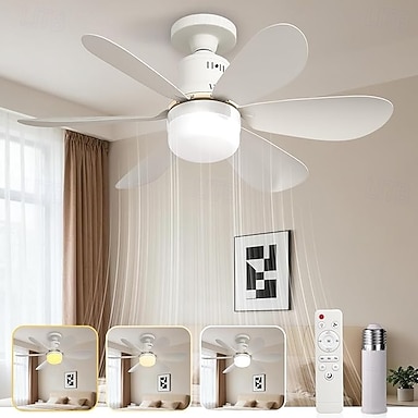 Steckdosenventilatorleuchte, Deckenventilatoren mit Beleuchtung und Fernbedienung, dimmbare LED-Glühbirne, 3 Farben 3000 K – 6500 K, 1550 Lumen, kleiner Deckenventilator zum Einschrauben für
