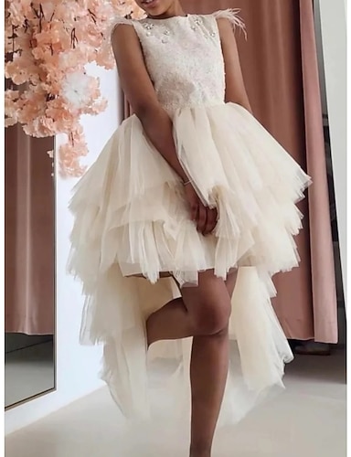 Ballkleid Knie Länge Blumenmädchen Kleid Quinceanera Frozen Elsa Mädchen Süßes Abschlussballkleid Tüll mit gerafftem königlichem Stil Tutu Für 3-16 Jahre