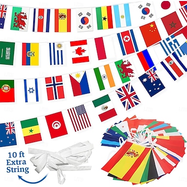 Wimpelkette mit 100 Ländern – 25 m (82 Fuß) – Internationale Weltflaggen-Girlande für das Fußball-Sommerturnier 2026 – Strapazierfähige Mini-Polyesterflaggen für Partydekorationen, Klassenzimmer und