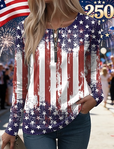 Unabhängigkeitstag Patriotisches Damen Kleid Mini Kleid Lässiges Kleid Petite Kleid T-Shirt Kleid Lässig Urlaub Geburtstag Lässig Lockerer Sitz Flagge Rot Weiß und Blau Kurzarm V-Ausschnitt